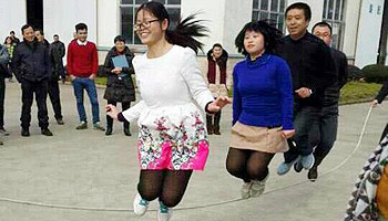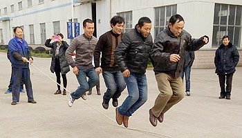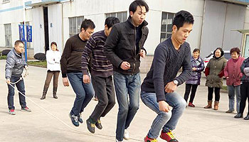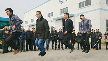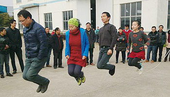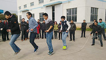 2月6日,公司举办了以部门为单位的跳绳比赛。12个部门无一缺席,就连人员不足的销售部,专职兼职凑足6人参加了比赛。比赛成绩差异很大,跳得多的给大家带来了惊艳,跳得少的带来了欢笑。办公室的娘子军出其不意跳到90成为冠军。先前公认的冠军金工小伙子为了团队荣誉又跳一次。