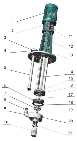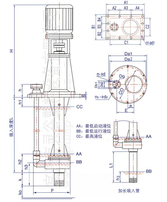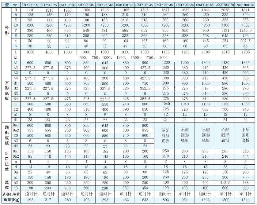 一、概述 FYUB千亿(中国)一站式服务平台工程塑料悬臂液下泵的过流部件均采用超高分子量聚乙烯(UHMWPE)制作,具有优异的耐腐、耐磨和耐冲击性能;同时,由于采用悬臂轴结构而取消了下部辅助支承,从而彻底解决了下部辅助支承在无法用冷却水冷却和润滑的情况下不耐磨以及泵不能开空车的难题,特别适用于含固量高且不能加冷却水的腐蚀性介质(含固体颗粒的重量浓度≤20%,固体颗粒直径≤1.0mm),该泵的适用温度≤80℃。 二、型号说明